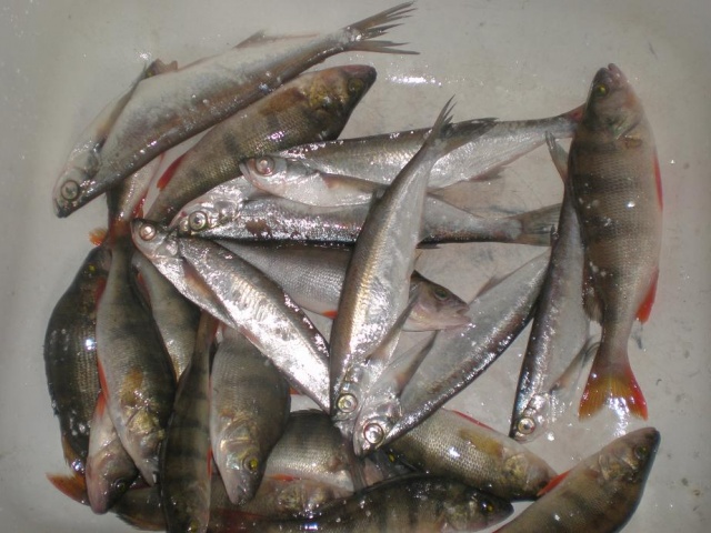 , лишь временами показывалась на поверхности. За два часа попался только один окунёк около 80 гр
