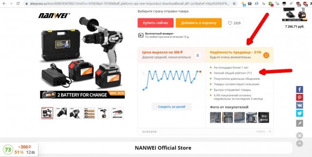 Окончание эпопеи с шуруповертом от Алиэкспресса.https://aliexpress.ru/item/4000393878921.html?spm=a2g0s.9042311.0.0.354b33edrxNF9fПродавец вернул деньги и я купил: "Дрель аккумуляторная Metabo BS 18 LTX BL I 1х5,5 Ач LiHD + ЗУ ASC55".При случае приобрету аккумулятор небольшой емкости для домашних дел.P.S. Мой отрицательный отзыв о шуруповерте на Али не разместили.