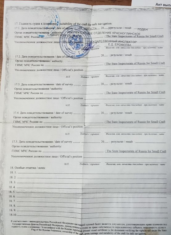 Если документ называется судовой билет - в нем стоит отметка - допущен к эксплуатации и с момента освидетельствования прошло менее 5 лет - все хорошо.