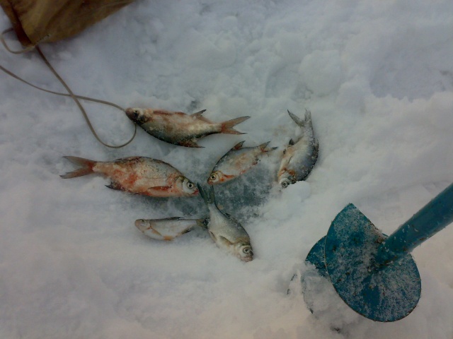 Рыбки немного поймал, но оставил вместе со стульчиком в мешочке около лунки чтоб нетаскать. Пошли на берег перекусить, через 2а часа приходим стульчика и мешочка с рыбой нет, хотя рядом стоящая палатка товарища целая. Нашел всё в пятидесяти метрах, мешочек с рыбой изорван вхлам. Лисичка перекусить приходила.