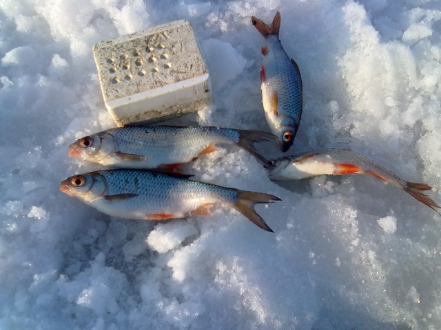 Сегодня был в Купино. Ловил с одной лунки у берега, в пол воды на мормышку с подвесным крючком. Подсаживал и опарыша и мотыля - красноперка активно клевала на всё что движется. Попадалась и мелочь, и ладошечные экземпляры.