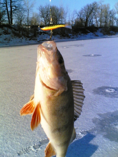 Сегодня побывали в Чапаевске в карьере где намывают песок. Я поймал в общем 2 кг. окуня, в основном небольшого, самый крупный всего лишь на 200гр. Был один сход крупной рыбы с обрывом мормышки граненый шар. Не понял кто был, но что-то в районе 500-800гр. Оборвал еще одну мормышку на сетке . Был поражен крепости лески Шимано ультегра 0,12. Сетку приподнял метров на 6, пока она не оборвалась. Остальные спутники поймали совсем мало, штук по пять окунишек. Белая рыба совсем не клевала.