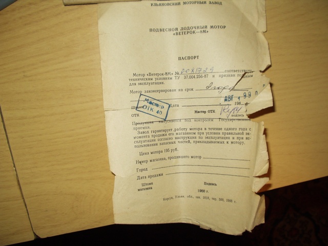 С прежнего хозяина что то просить уже смысла не вижу. Он продал, я купил. ВСЁ!!! Руки пожали, разошлись оба довольные.)))Когда дойдёт дело до регистрации, съезжу или позвоню в ГИМС, посмотрю чего скажут......Вариант мне видится такой: поехать в магазин где торгуют б/у моторами и за вознаграждение попросить помочь в этом деле.....Или договор купли продажи нарисовать (якобы я у них его купил) или может посоветуют ещё чего нибудь........