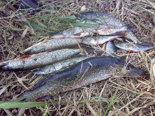 Всем доброго вечера. Сегодня весь день провел в Пастухах проездом через Крутец. В Крутце- в одном интересном местечке, на поппер (OWNER CULTIVA) два хороших окуня, один оччень хороший (по безмену ровно кило)-слов нет. Щелкнул его на телефон, но нет шнуров, что бы на комп перегнать. Но приезжал не за окунями, поэтому не задерживаясь, умчался дальше в Пастухи. Только приступил, начало не слабо задувать, пока было возможно изловил шесть зубастых (2кг, 3,5кг и четыре шнура до килограмма), к этому времени якорь перестал держать, из лодки просто выдувало, а тут еще хороший сход возле лодки, уже потянулся за сачком, но крокодил разинул варежку, тряхнул башкой, и блесна повисла у меня на очках. Настроение подпортилось, развернулся и уехал домой. Вся щука поймана на AGLIA LONG № 3.