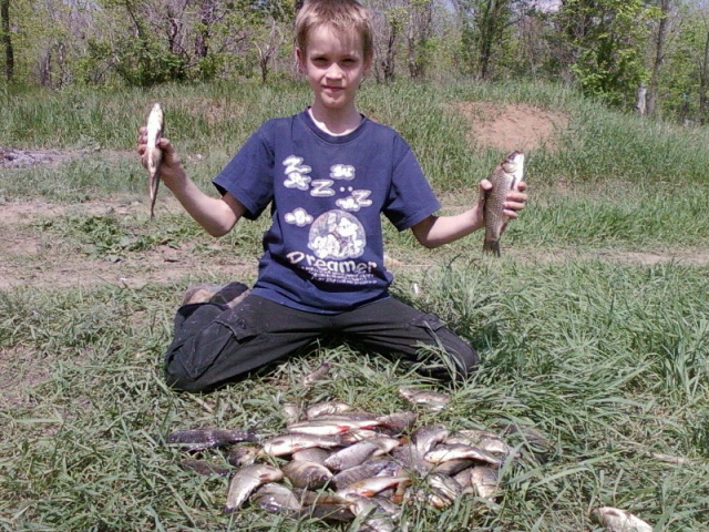 Доброго всем суток! Вчера (22.05.2011) ездили поохотиться за караем в Большеглушицкий р-н (на бесплатный водоем) вместе со cbsam и Сергием. Доехав до водоема и размотав снасти мы приняли бой с обитателями местного водоема (обрывы, сходы, зацепы). Рыбачили поплавком на червя, опарыша, периодически подбрасывая прикорм для разжигания апетита чешуйчатых жителей. Погода и наши противники нас не подвели, кроме массы положительных эмоций и интересного общения мы привезли с собой: Сергий - 4-4,5 кг ладощечного и поболее карася, сорожка, красноперка, cbsam - 3,5-4 кг зачетной сороги, красноперки и полтора ладошечного (зачетного) карася. И мой улов на фото (выложу вечером, на работе не получается никак)