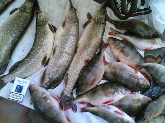 Придя на лед, я запечатлелся с чужим трофеем и стал уточнять, как клев. Выяснилось, что вчера было лучше. Она как. Я сел на лунку и выяснил, что вчера клевало лучше. Но мне все ж удалось выудит трофейную (для меня, во всяком случае) сорожку в 350 гр. В итоге на четверых (Толян +1 сорога) мы спымали, в свободное от возлияний время, примерно 13 кг бели и трех щук.