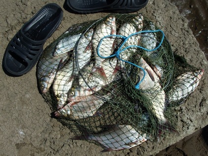 ). Ловил на горох. Клев был плохой. В итоге поймал 5 голавликов грамм по 500 столько же сорожки и одного подлещика грамм на 700-800. Очень много отдыхающих и катающихся на скутерах.