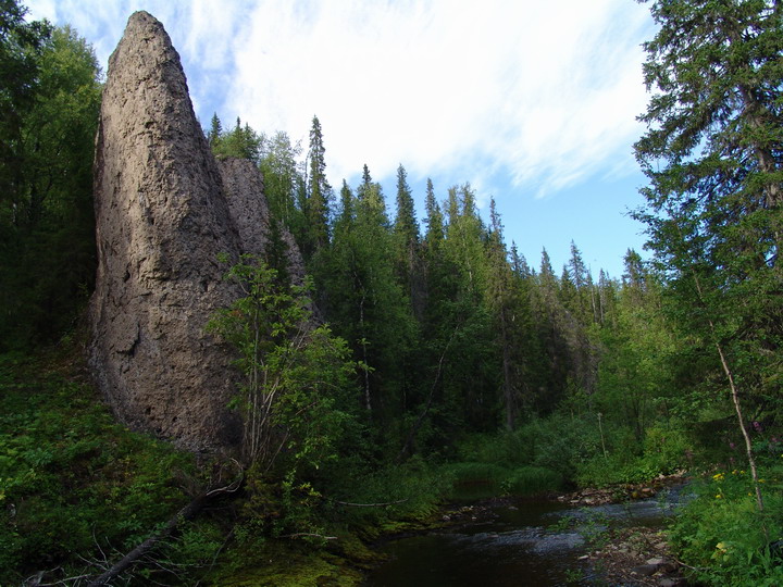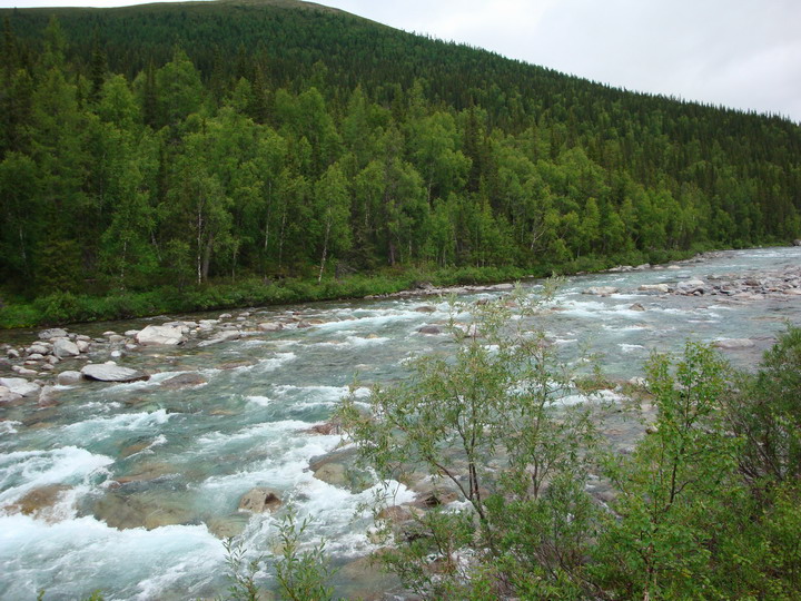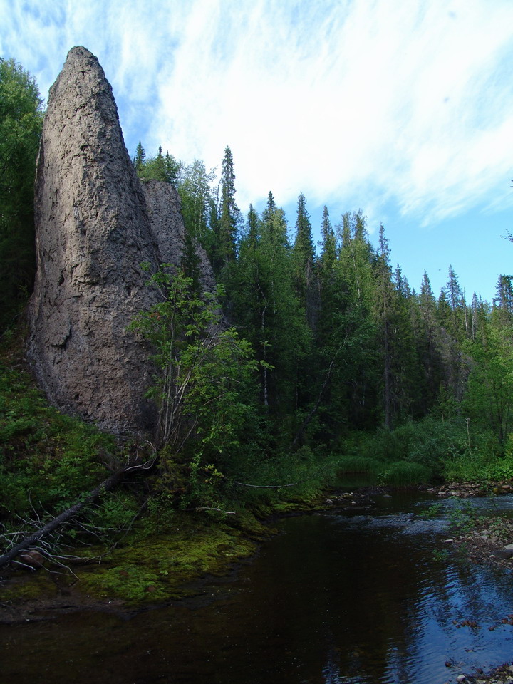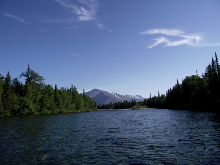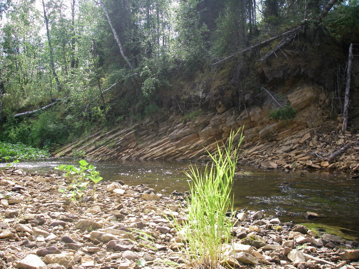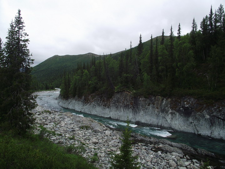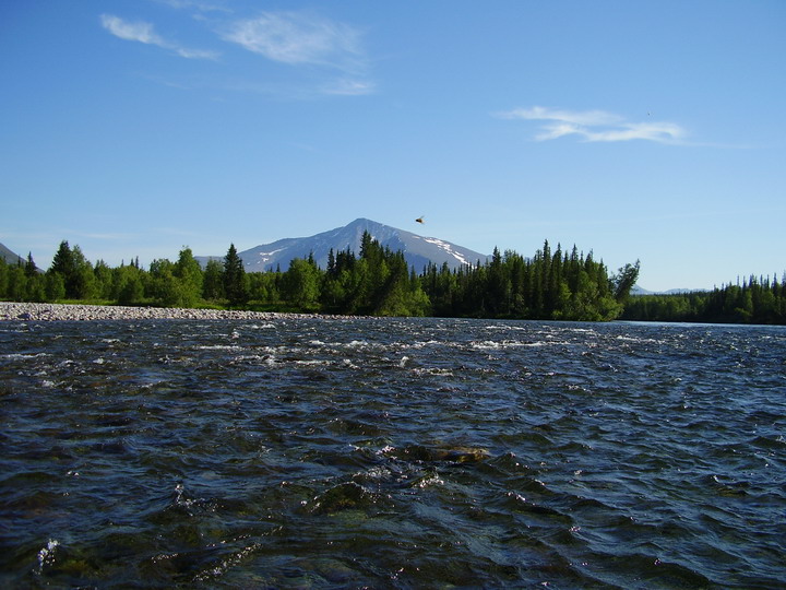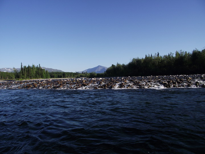 Прошли устье Вангыра, с кормящимися кумжатами. Изба Мезенцева, практически остатки от неё. Течение действительно усилилось, но не так, что бы очень. Такими темпами, сотню…? Хм… Ну на фига вперёд заглядывать? Гребёшь? И греби! Дорогу осилит идущий! Дорога в тысячу ли начинается с одного шага! Глаза страшатся, а руки делают! В общем, в мозгу должна находиться простейшая программа, типа «выполняешь следующий гребок, пока не покажется Изьяю», и никаких отвлекающих моментов, типа размышлений о том, сколько пройдено и сколько ещё осталось, и сколько времени потребуется на оставшееся с учётом времени, затраченного на пройденное...