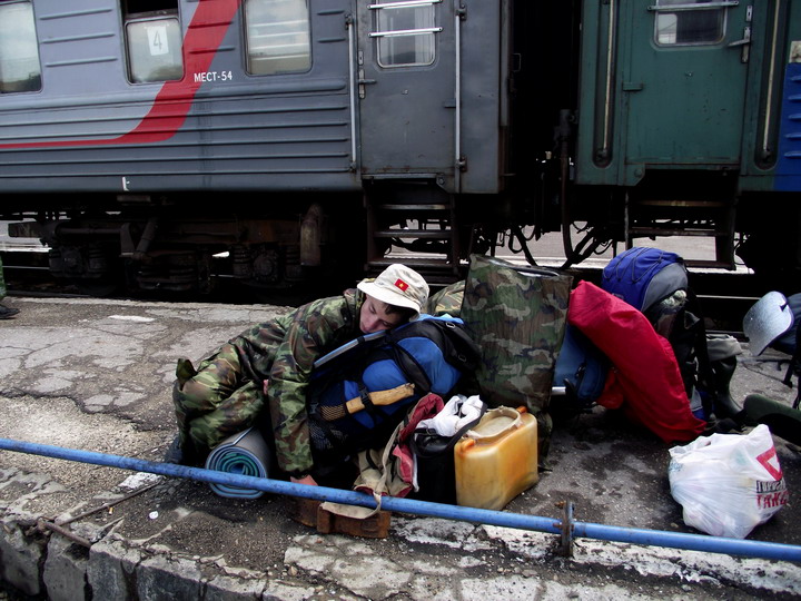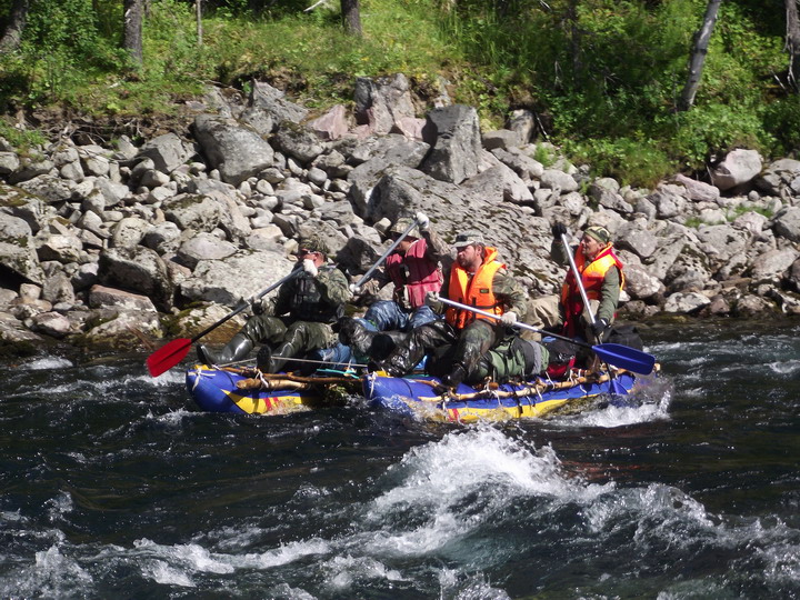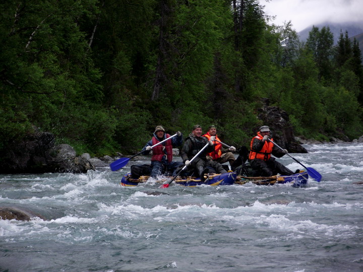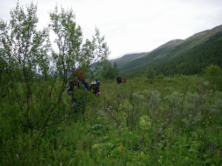 Выдержка из проспектов: «…если удастся организовать заброску плав средств вертолётом, то возможен следующий маршрут…». Мнение встречной группы (молодёжь с руководительницей): «Вы катамараны с собой тащите??? Сумасшедшие, в горы с такими рюкзаками!»