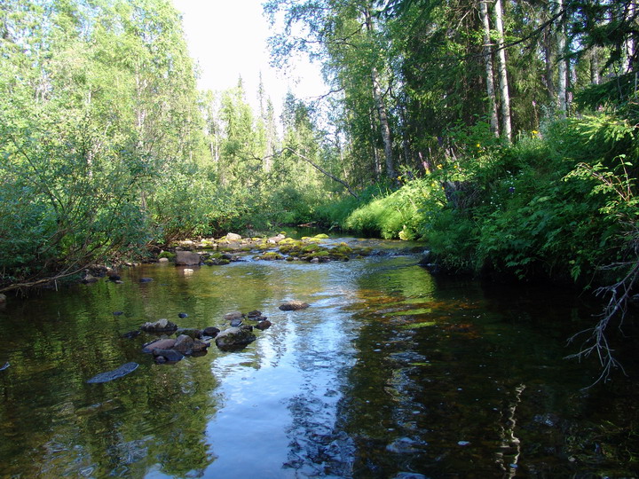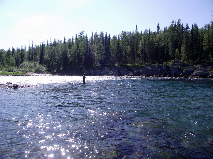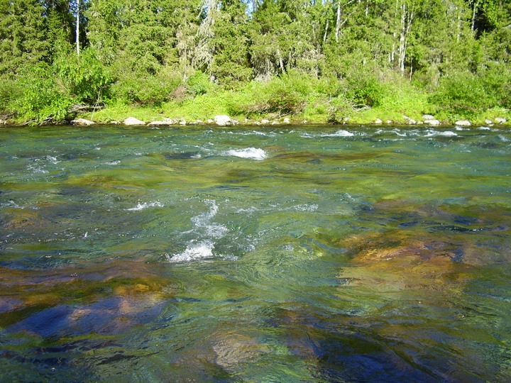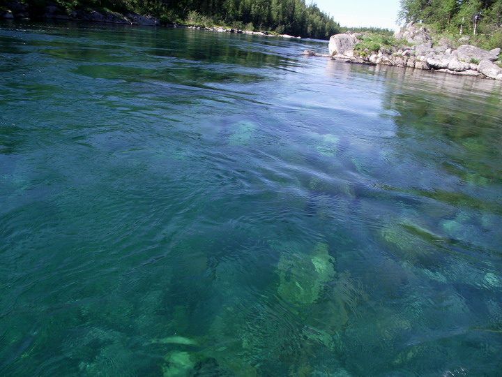В какой-то момент рельеф реки немного изменился. Порожки какими были, такими и остались. Но между ними стали появляться не стремнины без камней, а настоящие плёсы, с замедлением течения, глубинками у берега! Шаловливые ручонки зачесались, и не зря. В наших взаимоотношениях с местной рыбой наступил час «Че»!