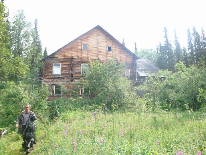 Когда мы решили, что дальше не стоит в него соваться, на правом берегу нарисовался дворец. Не из хрувсталя, и не из стекла и бетона, а всего лишь из дерева. Но в данных условиях это действительно был дворец. Высокое здание. Пристрои. Подсобные строения, цеха. Склад кирпича. Законсервированный дизель-генератор. Всего и не упомнишь.