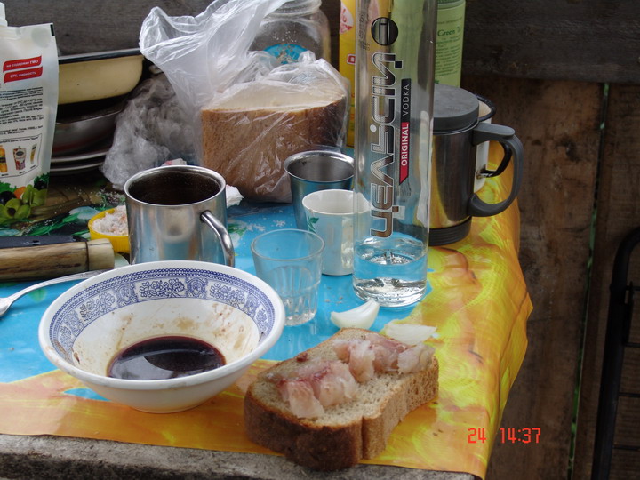Кто-то отправился в посёлок. Две пятиэтажки, частично явно из Сталинграда телепортированные, и несколько избушек. В магазине (от РЖД. У других организаций интересов тут видимо нет.) выходной, суббота. Но, «нет преград для патриотов». Находим, где живёт продавщица, с трудом будим звонками и стуком (время восемь, пол-девятого), потоками слёз приносим её к магазину. Всё, что нам надо, там было. Есть счастье в жизни!