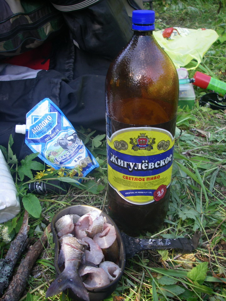 С собой взяли уху в баклажках, варёную и жареную рыбу. На обед остановка не планировалась.