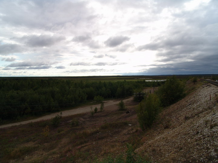 Справа, перед горой, еле проглядывающая узкая полоса реки, это КосьЮ до слияния с Манарагой.
