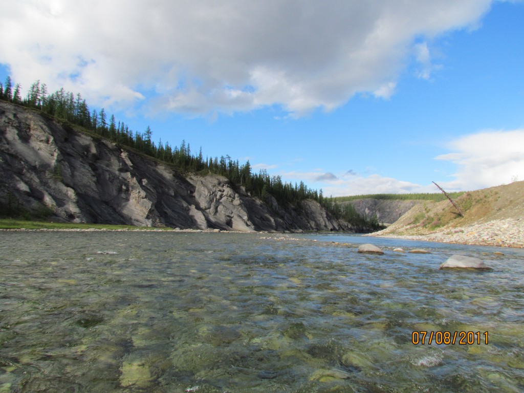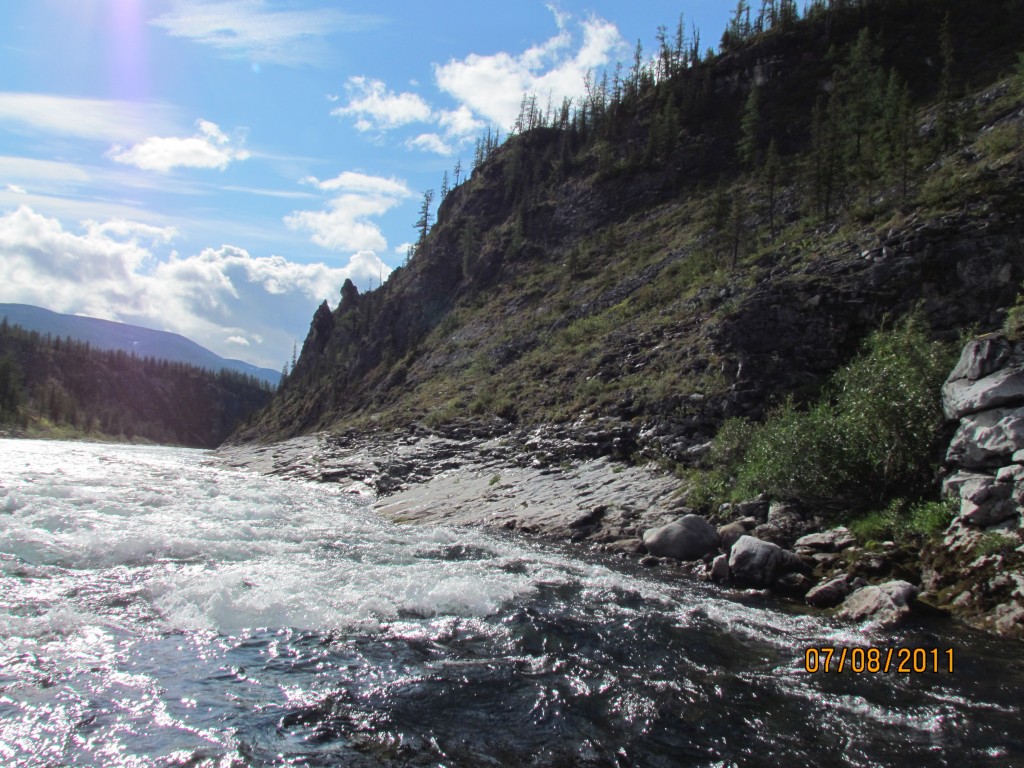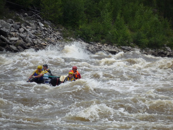 Воды мало. Но в нормальную воду это та ещё попа. Струя бьёт прямо в скалу. Мы слегка её задели и ушли вправо. Но при мощной воде долбанёт о скалу так, что дальше демонтированным поплывёшь, а не пойдёшь, причём запросто. Попробовать при случае надо будет, но на облегчённом судне, желательно без вещей.