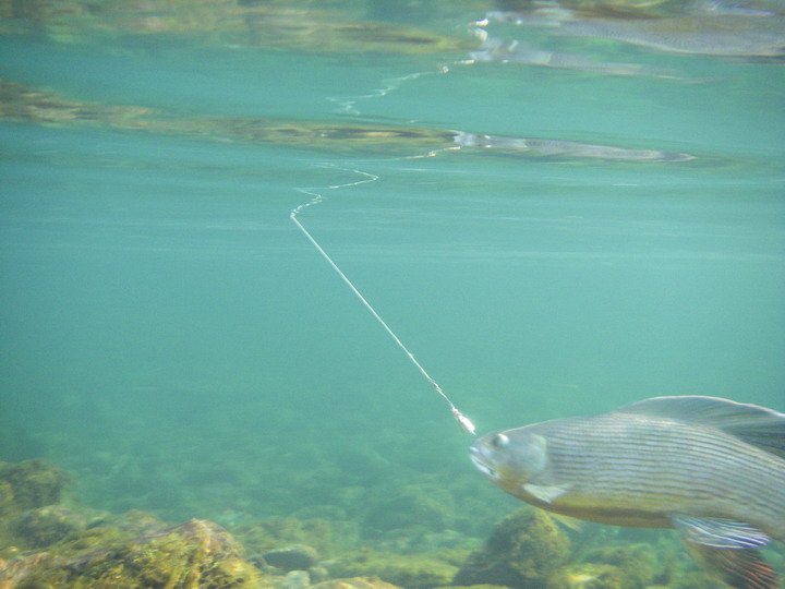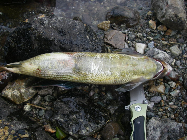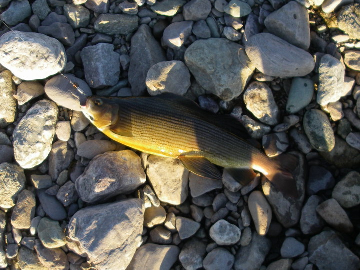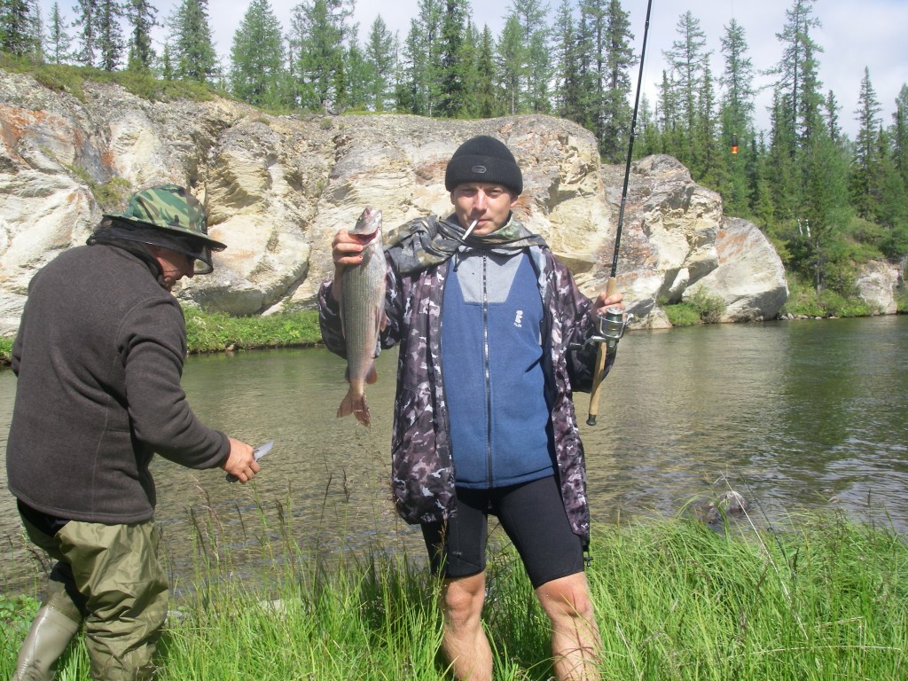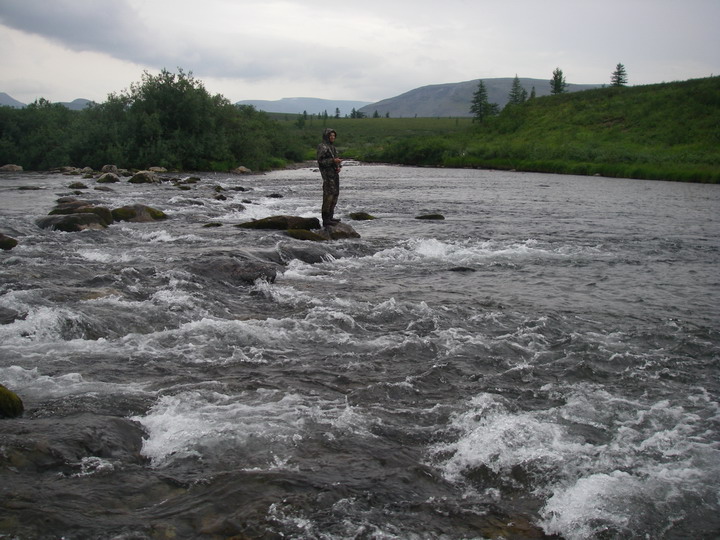 На пол пути к мосту нарвался на кормёшку хариуса. Дождик кончился, полетела мошка, и немалое её количество попадало в воду. Кругов от поцелуйчиков – как от дождя! Сколько же хариуса в этой стае? В основном мелкий, зачастую он вылетал из воды в полный рост, касатка, блин. «Спасите Билли» насмотрелся, не иначе. Но мужик, в одиночестве приехавший порыбачить на КаЭске, сказал, что была пара сходов и чего-то нормального. У меня с собой мух нет, а в период питания с поверхности харю вряд ли можно соблазнить чем-то иным. Я и не пытался.