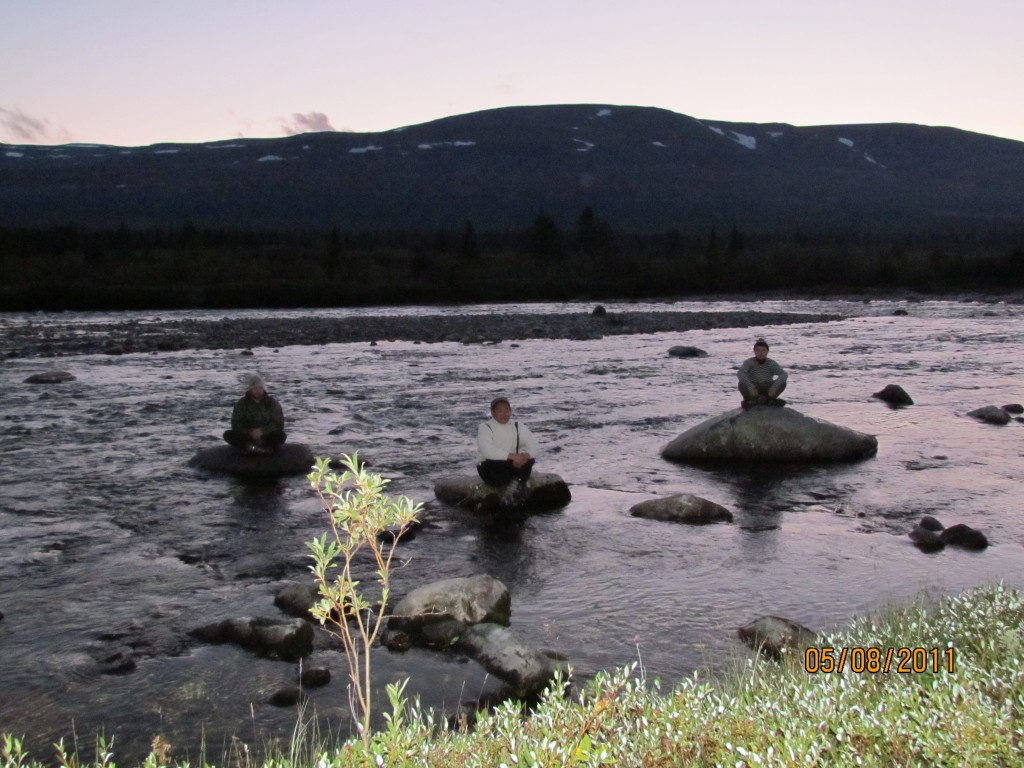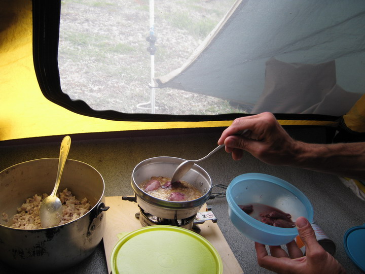 В полночь жизнь дала нам возможность расплатиться за полученную от интинцев помощь. К нашему берегу причалили коллеги-путешественники, которым завтра тоже предстояло путешествие на машине в Инту. С удовольствием накормили их, избавив от траты драгоценного времени на готовку. Жители Москвы, Инты, Сыктывкара (если ничего не путаю). Жаль, не позволили подольше пообщаться усталость после насыщенного дня и очень насыщенный ужин с насыщенной настоечкой насыщенного цвета.