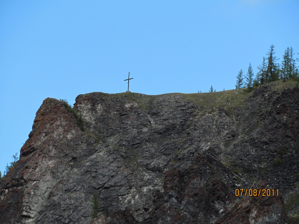 Крестов по берегам много. Обычно поблизости на воде можно найти место, которое в большую воду даёт основания, что бы такие кресты появлялись.