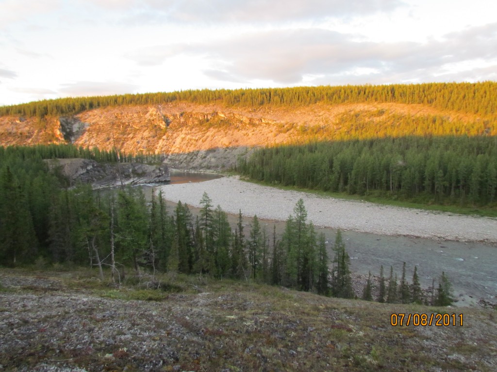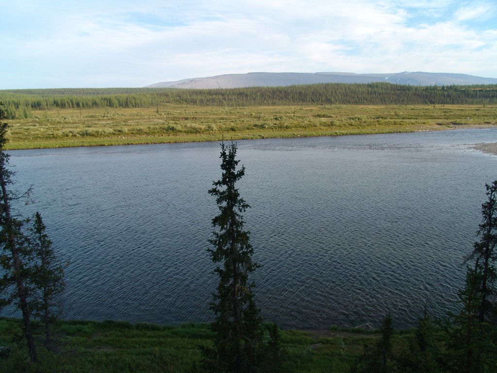 Остров у нашего лагеря. Вдали виден участочек Лимбекою перед впадением в Кожым.