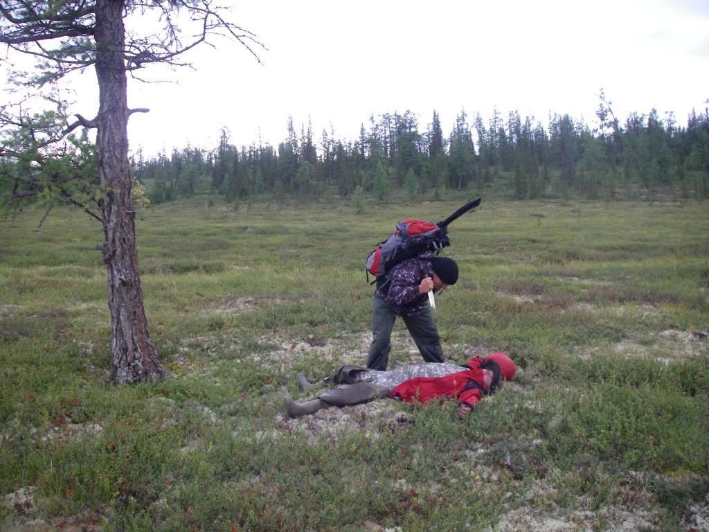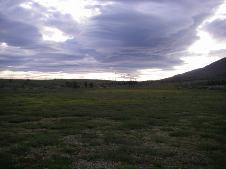 Нормальная тундра, в меру заболоченная, кочек почти не было, берёзки мало. Много ягод, укушались все. Но не всем это непривычное дорожное покрытие понравилось.