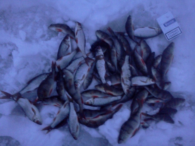 Как из пулемёта ловлю штук 20-25 сорог и краснопёрок. Ладонь - 200 (Ну, не совсем двести. Так. 180, где-то). Потом с другой лунки.. Игорь тоже начинает махать руками. Прикорм заработал. Понеслась!
