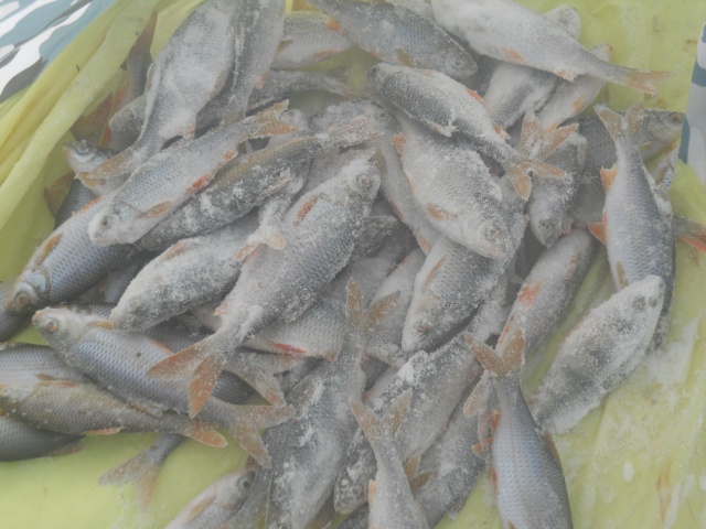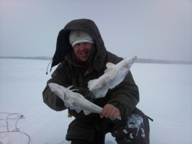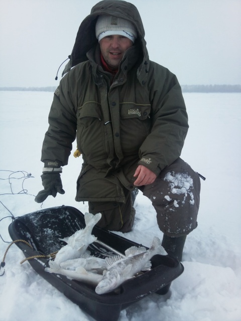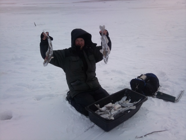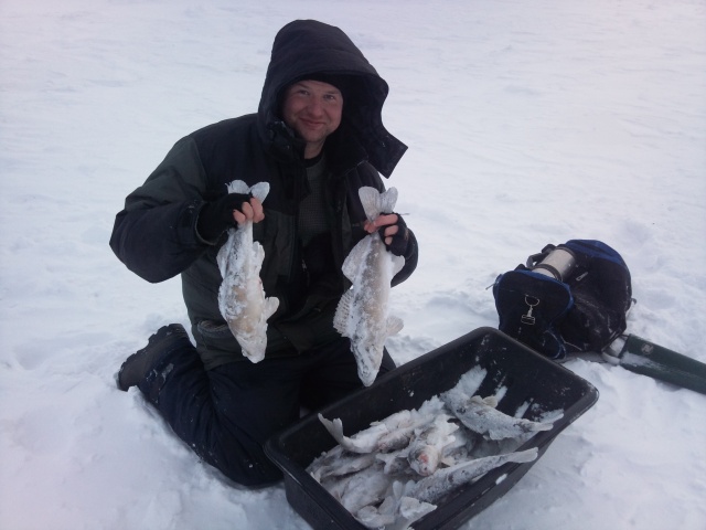 Да Мишаня сегодня дал ганджубаса! С Сегеем(брат Миши) кружили вокруг счастливчика как две пчелки, бурили лунки чуть ли не под ногой, ну а результат видно у нас по 7шт а у чемпиона 18 ... самый маленький у меня 600 гр большенький 1200