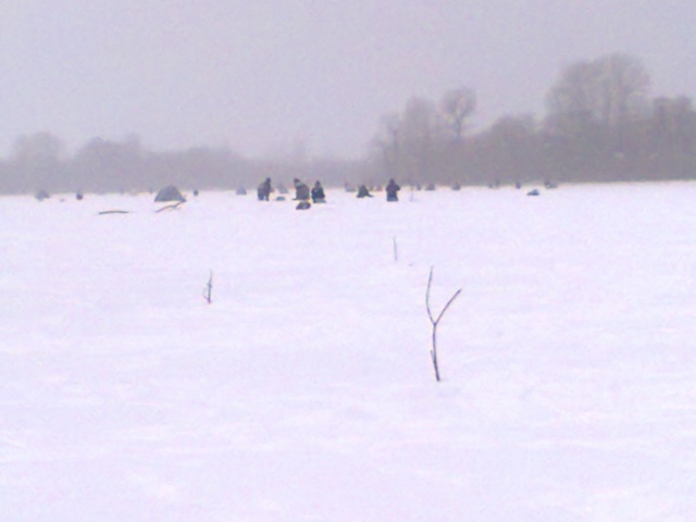 , моросил небольшой снежок с ветерком (рот откроешь - задница пукает).Народ так усиленно трес мормышками и балансирами, что двое решили окунуться. Один по пояс, другой по ноге. Будьте бдительны! Весна не дремлет