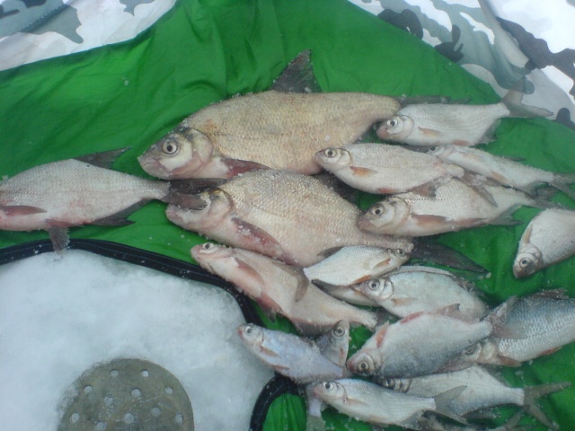 Севодня ходили на Самарку в районе 22, с утра ни одной поклёвки. После обеда решил удалиться немного от толпы метров на 500. и на пятой лунке долгожданная поклёвка,быстренько залазию в полатку и началось. За полтора часа поймал 3,700 кг. густеры, попались 3 леща и одна сопа.