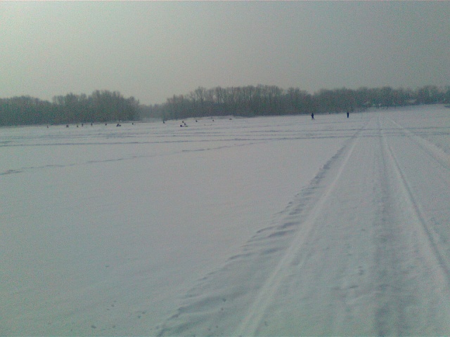 12 30 мы на самарке на песках! Первое место решили выбрать не далеко от берега т.к. мой товарищ в понедельник поймал там 10 кг шармана (сам лично видел )и клевал он с 12 , собственно по этой причине мы и решили поехать на пески!(глупо было надеется ,что он на этом месте нас всю неделю ждет!!! ну хотя бы лед ни в метр толщиной!)