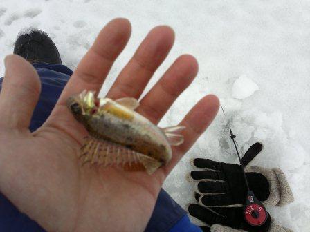 в итоге, пробурившись у самого берега, напали на стайки наноокуней, ершиков и изредка сорожки (вся рыбья детвора регулярно топилась). Погода конечно просто сказочная и морда лица постепенно краснела и становилась цвета кирпича (хотя у Сереги она такая уже была от его трехдневной рыбалки под Сызранью