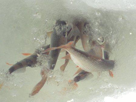 бошка встала в нужное положение и с чпоком щука выпрыгнула на лед
