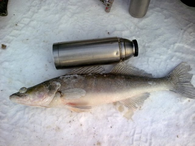 На третей лунке у меня мощная поклёвка. Есть! Тяжело-о-о! Тащу. На полдороги сход, мать его. Тут же ещё поклёвка! По зубам!