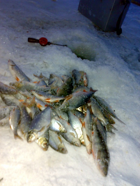 Второго числа ездили в Купино: я, михалыч и Dart, ловили в основном сорожку. Я и Михалыч ставили жерлицы на щуку, у меня глухо но зато сарожка порадовала.