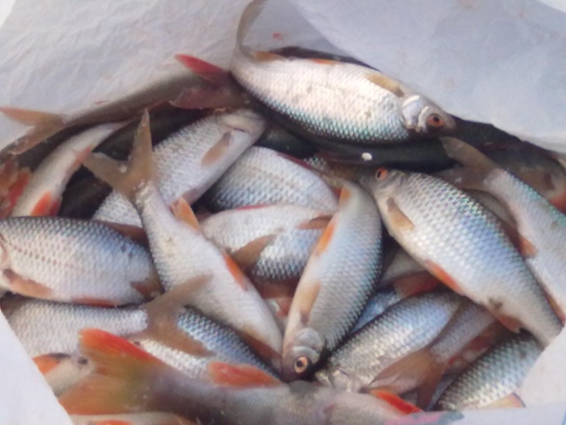 Первым поймал Игорь. Сразу двух. Сорога.