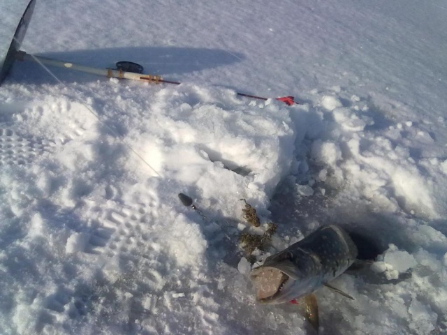 . ТАК вот У (Не рыбака ) всего 5 жерлиц (вчера купленных и ночью навязанных ) . Мы заточены на щуку по полной программе. Итог . Не рыбак --- 5 хвостов (общий вес примерно 8-9 кг. Мы ----- 2 флага мимо рук.