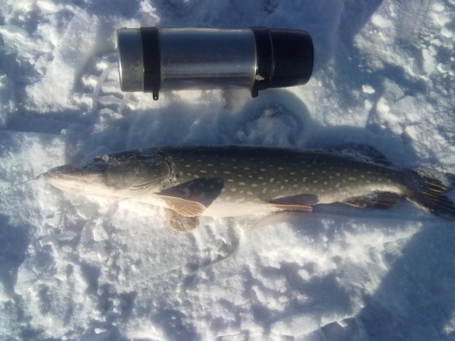 А мы с Грэем и еще одним товарищем сегодня не выдержали и после митинга рванули на Самарку не далече. Где-то около двух были на месте. Я по-быстрому поставил жерлички и через минут пятнадцать был первый флаг. Мелочевка. Еще минут через десять, опять флаг. Уже полторушка. Грэй не выдержал и начал требовать делиться жерлицами (сам лентяй не взял...). В общем поделили жерлички и Серега с товарищем выставились. Ну и дальше как и должно быть..
