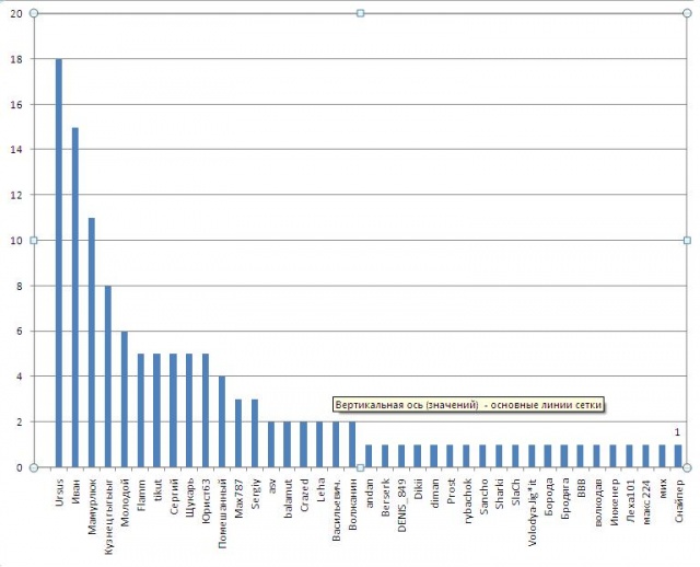 Не, ну народ, сами флудильню разводят и потом жалуются.Этот график ясно показывает, кто поддерживал эту ветку.А в теме политики лучше сами посчитайте... тут 9 страниц, а там за 50...
