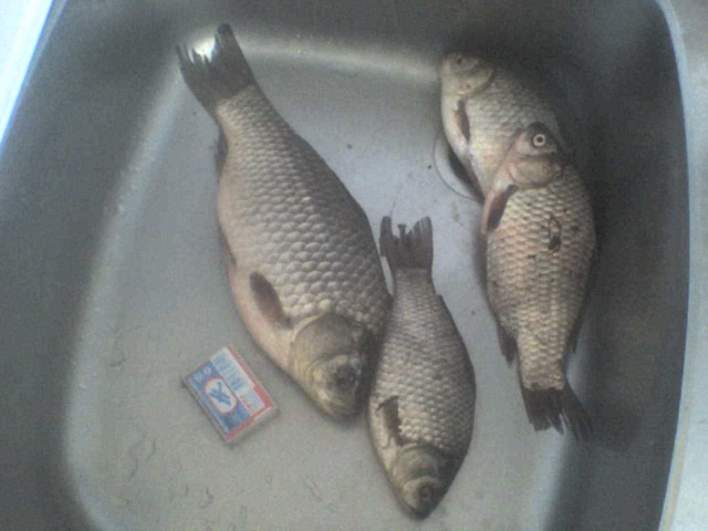 Решили сегодня вечером прокатиться до Самарского(на малый пруд), так сказать на разведку. Вообщем ни че так, рыбачить можно, карась плещется, только воняет дохлятиной после замора. За 2.5 часа 20 ладошечных карасиков на двоих, на мах. На фидер ни поклевки. П.С. Пробки на Южном просто жесть, из-за них целый час рыбалки потерял!!!