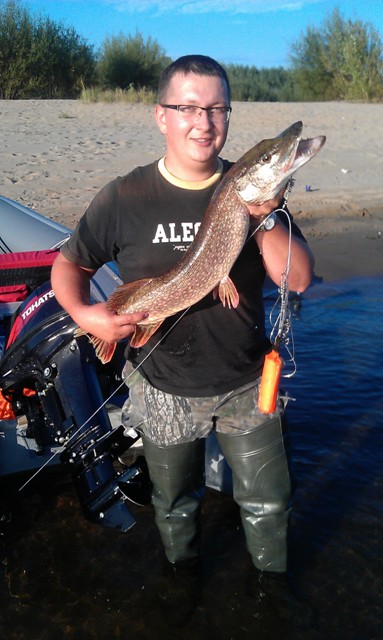 На крайнем в этот день забросе, уже в сумерках, из под мотора на вынутую из воды приманку вылетела по пояс :Dщучка далеко за пятеру. Смачно клацнула зубами, промахнувшись. А я довольный но усталый погнал домой.