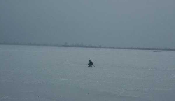 . Пробурил лед 8-9 см, поймал сорожку с мизинец