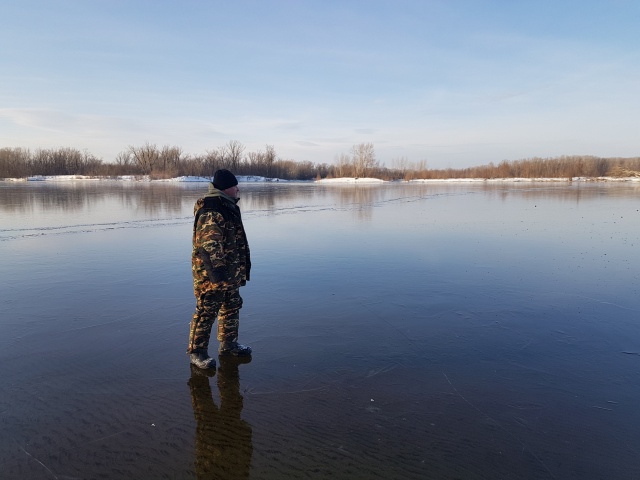 Вчера гуляли по набережной с тещей и тестем - смотрим Омик идет - а впереди уже лед на него, мы идем и думаем - какого он тут хрена забыл