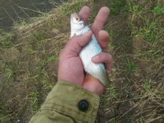 Сегодня после обеда, сжираемый бездельем, решил сходить покидать поплавочку (благо - р. Большой Кинель в 20-ти минутах пешком). Ловил на красного опарыша, оставшегося с последнего льда, обыкновенной поплавочкой с глухой оснасткой. Выбор места пал на окончание переката, переходящего в небольшую ямку. Клевало, но по большей части мелочь в пределах полладошки (были пескари, пара окуньков, плотвички, карасики и мелкие ельцы ) . Удивительно