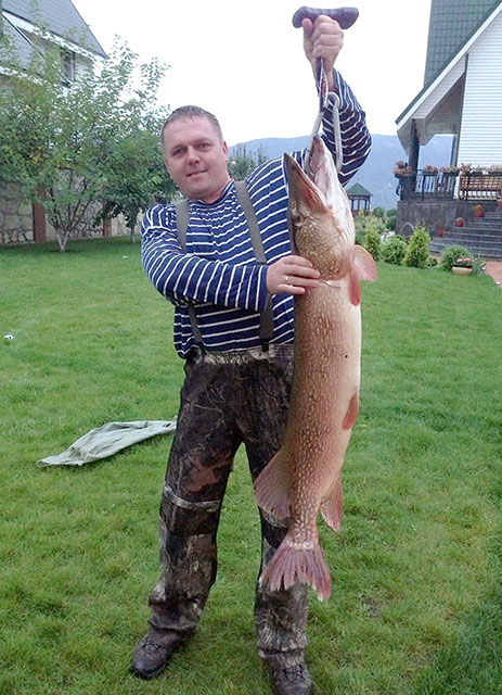 И снова дружище словил очередного трофея... честно на воблер, честно боролся до деревянных рук и поломанного подсачека. Это к слову о "правительственных 21 килограмовых щуках"... в руках он держит образец весом 12 кг.