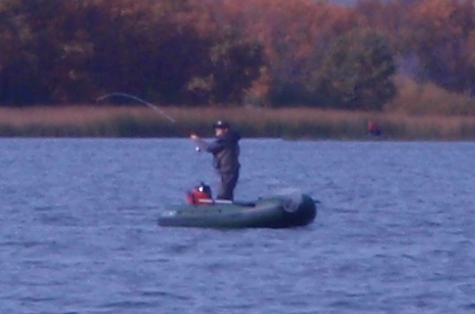 Потом происходит поклёвка ещё одного монстрика,но этот явно поменьше,подвожу его к лодке,он на поверхности,ну примерно прикинул его вес - кила на 1.5 потянет наверное.Уже взял подсачек,начинаю заводить туда окуня и в этот момент он сходит.Опять выругался  и продолжил ловлю ;D