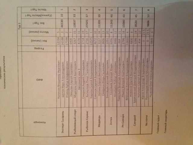 По итогам первого тура Сызранская команда 1-е,мы 2-е,Рыболов Сервис 3-е.