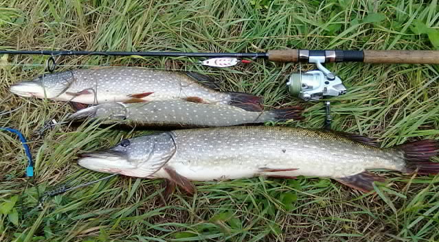 Ну а под конец и мне немного подфартило, выловил неплохую щуку по меркам берегового спиннинга)
