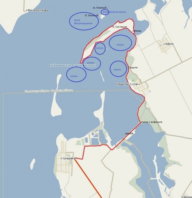 Вот лови карту.На въезде в Хрящёвку главная уходит влево а ты езжай направо. Там дорога одна и поток машин на рыбалку большой. Не перепутаешь. Как дамбу проедешь свернёшь с асфальта налево на песчаный автобан. Тут кто вперёд со скоростью 120 км/час. По пути на берегу постоянно будут встречаться стоянки машин рыбаков. Выбирай любое место. За о.Согласия к Ужиным можно проехать по берегу или через камыш. До ужиных по берегу от Тольяттинской обводной получается ровно 65 км.Удачи!
