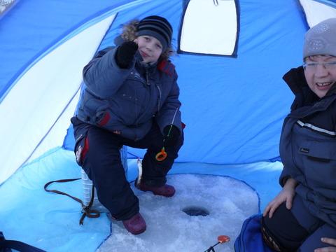 ). Потом он никак не мог понять когда подсекать,но потихоньку разобрался. В итоге он поймал рыбок 10(где-то с помощью,где-то сам) остался очень довольным.Мне конечно половить не удалось,но я не жалею. В нашем "пингвиньем" полку прибыло.