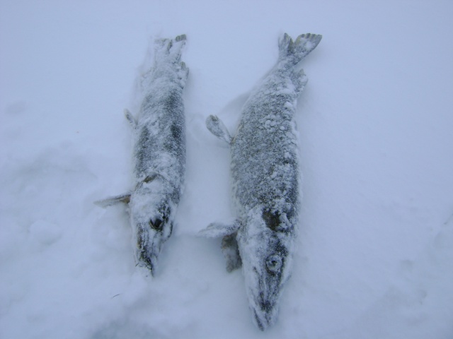 Ну и ближе к 4 часам еще четкая поклевка и клыкастый на льду.