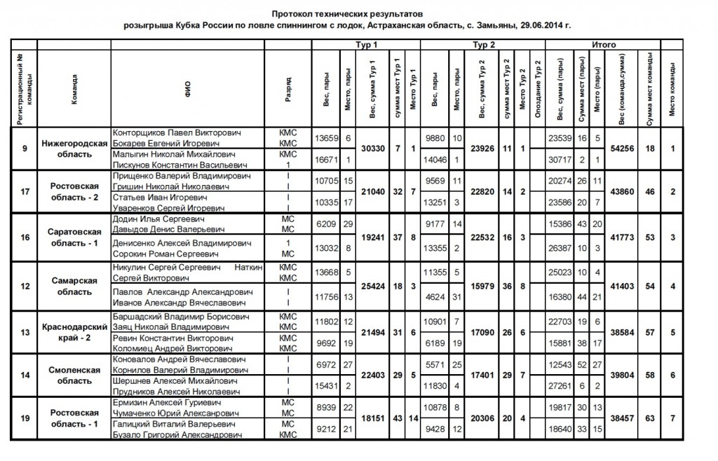 По итогам двух туров наша команда смещается на четвертое место с отставанием всего 1 балл от бронзы. В личном зачете наш экипаж выходит на четвертое место, с одинаковым количеством баллов как у бронзовых призеров экипажа Денисенко-Сорокин из г. Саратова. Мы уступили по общему весу.